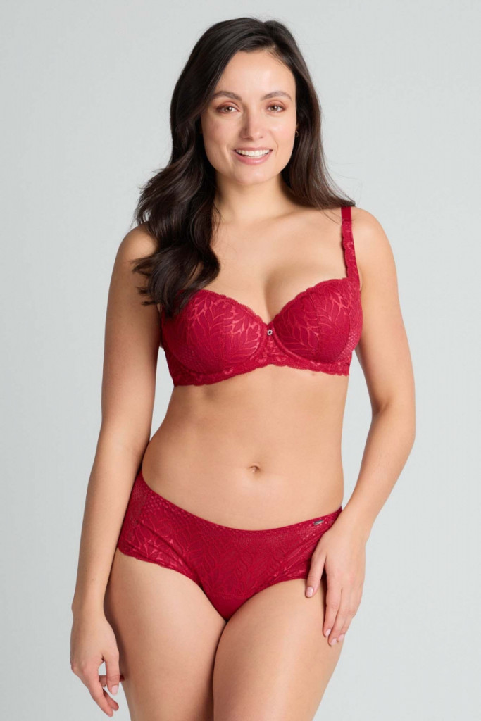 A balconette szabású melltartó mély és kifinomult dekoltázst formál. Luxus hatású, gazdag mintázatú csipkéje és a vörös szín mély árnyalata azonnal magára vonja a figyelmet. Megbízható tartást biztosít, és minden mozdulatodhoz alkalmazkodik. Tökéletes választás a mindennapokra.