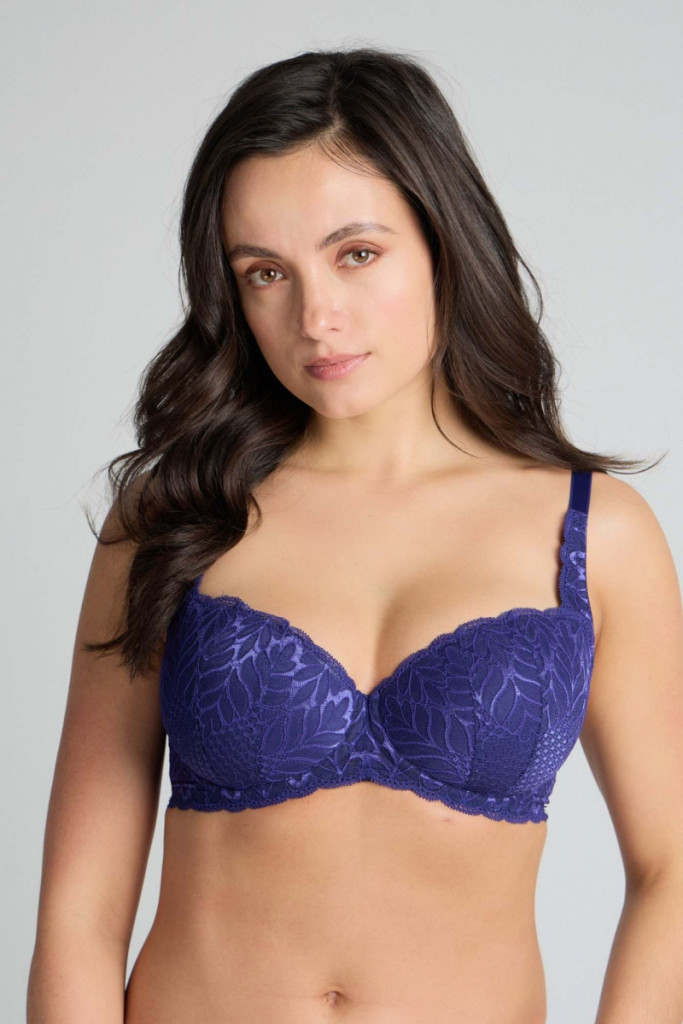 Varázslatos dekoltázst érhetsz el ezzel a sötétkék, balkonett fazonú melltartóval. A rugalmas merevítők követik a tested mozgását, és megbízható tartást biztosítanak. Finom csipke és lila fényű árnyalatok teszik igazán elbűvölővé. Kényeztesd magad ezzel a tökéletesen illeszkedő luxus melltartóval.