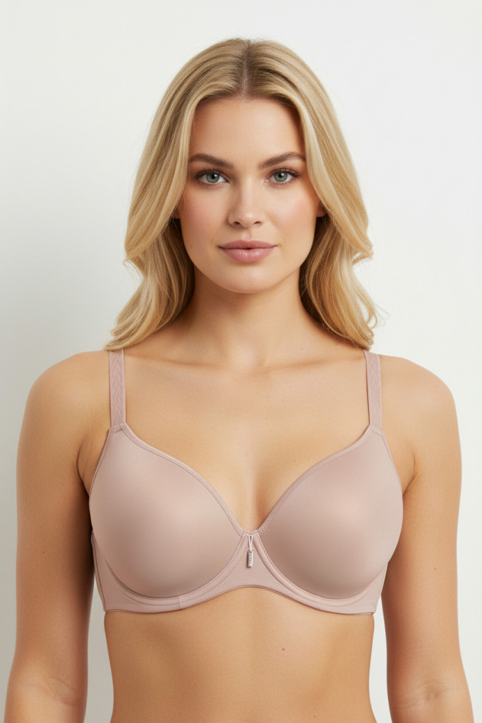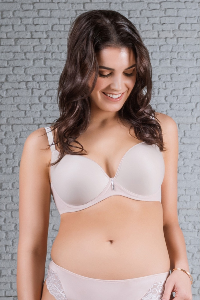 Mélyen dekoltált melltartó, nagyon vékony szivacsbetéttel. A benne lévő szivacs egyáltalán nem növeli a mell méretét. Sima felületének köszönhetően nem látszik át a ruha alatt.