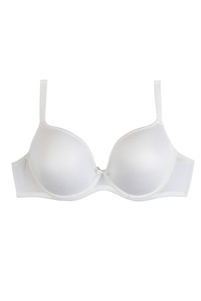 Gyönyörű világos törtfehér színe van. Fésült csipkeborítással készült, így nem tűnik át a ruha alatt. Vékony, rugalmas szivacs, amely tökéletesen illeszkedik a mell formájához. Mélyen dekoltált fazon, extra kényelmes.