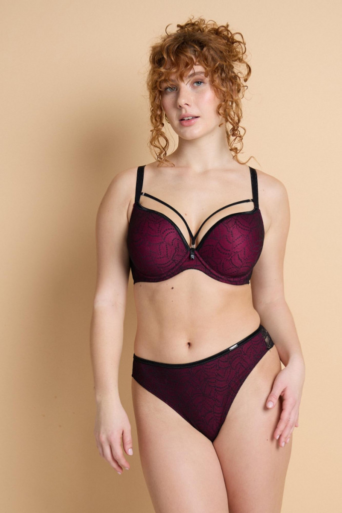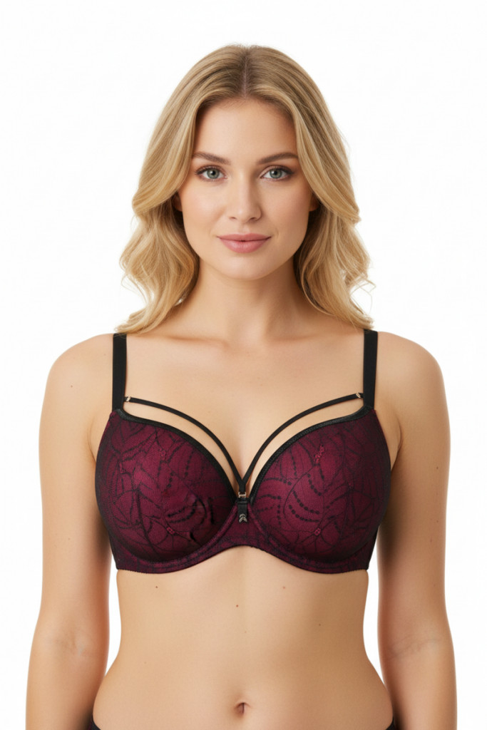 Cassandra exkluzív bíbor színű pántos melltartó kényelmes és nőies mindennapi viselethez.
