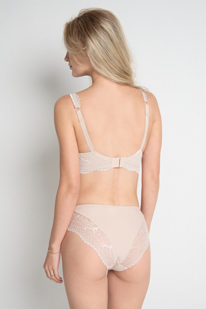 A nagyon kényelmes bugyi trendi cappuccino színben pompázik, és a romantikus csipke részletek diszkréten simulnak a ruhád alá, így nem látszanak át. Minden testalkaton remekül mutat, klasszikus szabásának köszönhetően pedig a nők minden korosztálya szívesen viseli. Szerezd be mellé a hozzá illő cappuccino színű melltartót is, és varázsolj magadnak egy stílusos, elegáns fehérneműszettet.
