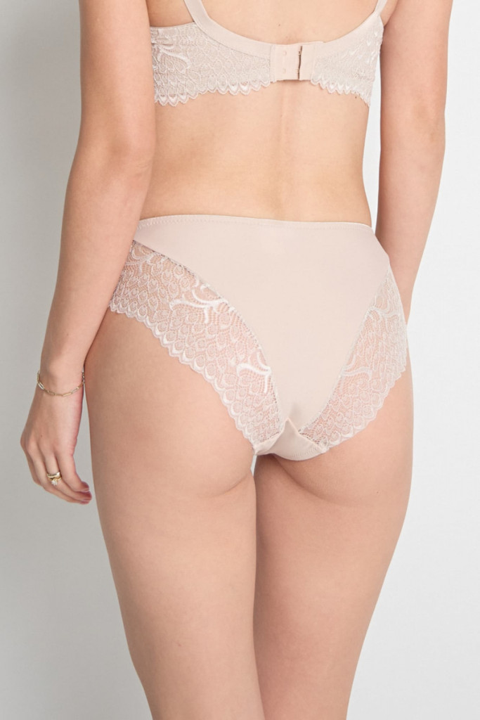 A nagyon kényelmes bugyi trendi cappuccino színben pompázik, és a romantikus csipke részletek diszkréten simulnak a ruhád alá, így nem látszanak át. Minden testalkaton remekül mutat, klasszikus szabásának köszönhetően pedig a nők minden korosztálya szívesen viseli. Szerezd be mellé a hozzá illő cappuccino színű melltartót is, és varázsolj magadnak egy stílusos, elegáns fehérneműszettet.