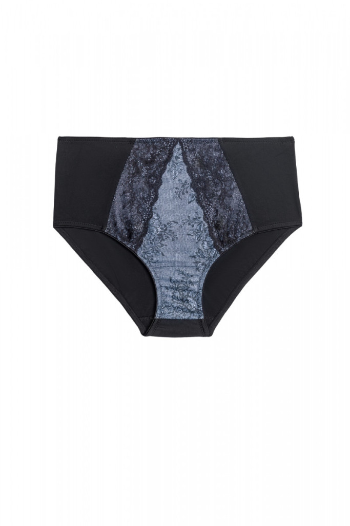 Magasított fazonú kék mintás csipkés bugyi kényelmes fazonnal, elegáns és praktikus viseletre.
